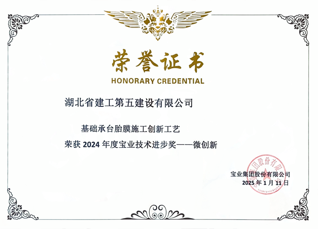 • 湖北省建工第五建設(shè)有限公司榮獲寶業(yè)集團2024年度寶業(yè)技術(shù)進步獎微創(chuàng)新獎